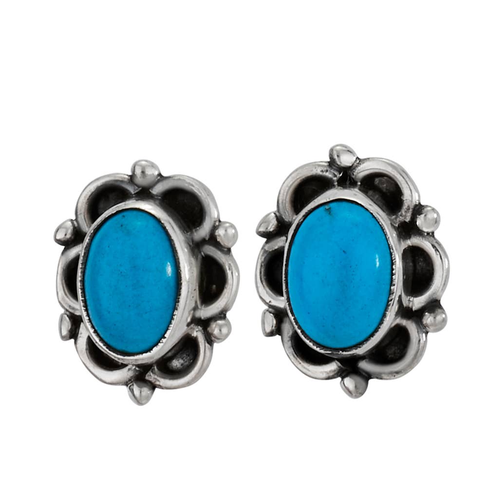 Turquoise Stud Earrings in Sterling Silver Scroll Frame